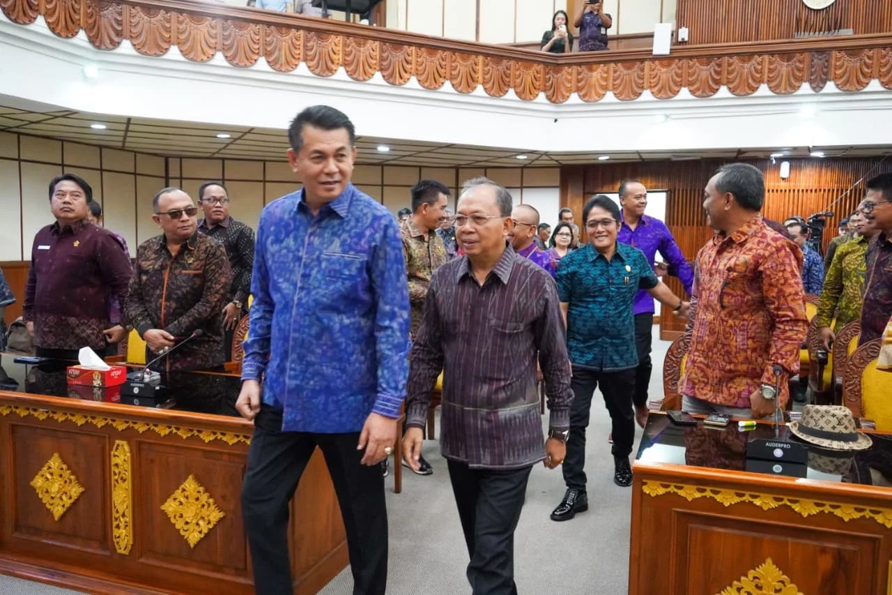Rapat yang dipimpin Ketua DPRD Provinsi Bali ini dihadiri Gubernur Bali Wayan Koster dan Wakil Gubernur Nyoman Giri Prasta. Dengan agenda penyampaian Pandangan Umum Fraksi-Fraksi terhadap Raperda Bale Kertha Adhyaksa.