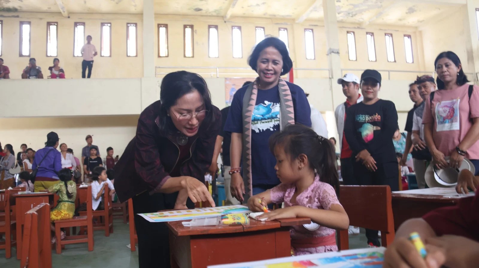 NUSA PENIDA, insertbali.com – Penjabat (Pj.) Ketua Dewan Kerajinan Nasional Provinsi Bali Ny. Drg. Ida Mahendra Jaya hadir dalam rangkaian acara Nusa Penida Festival hari kedua yaitu Lomba Mewarnai Anak-Anak TK bertempat di GOR Sampalan, Nusa Penida, Klungkung pada Jumat (6/10).