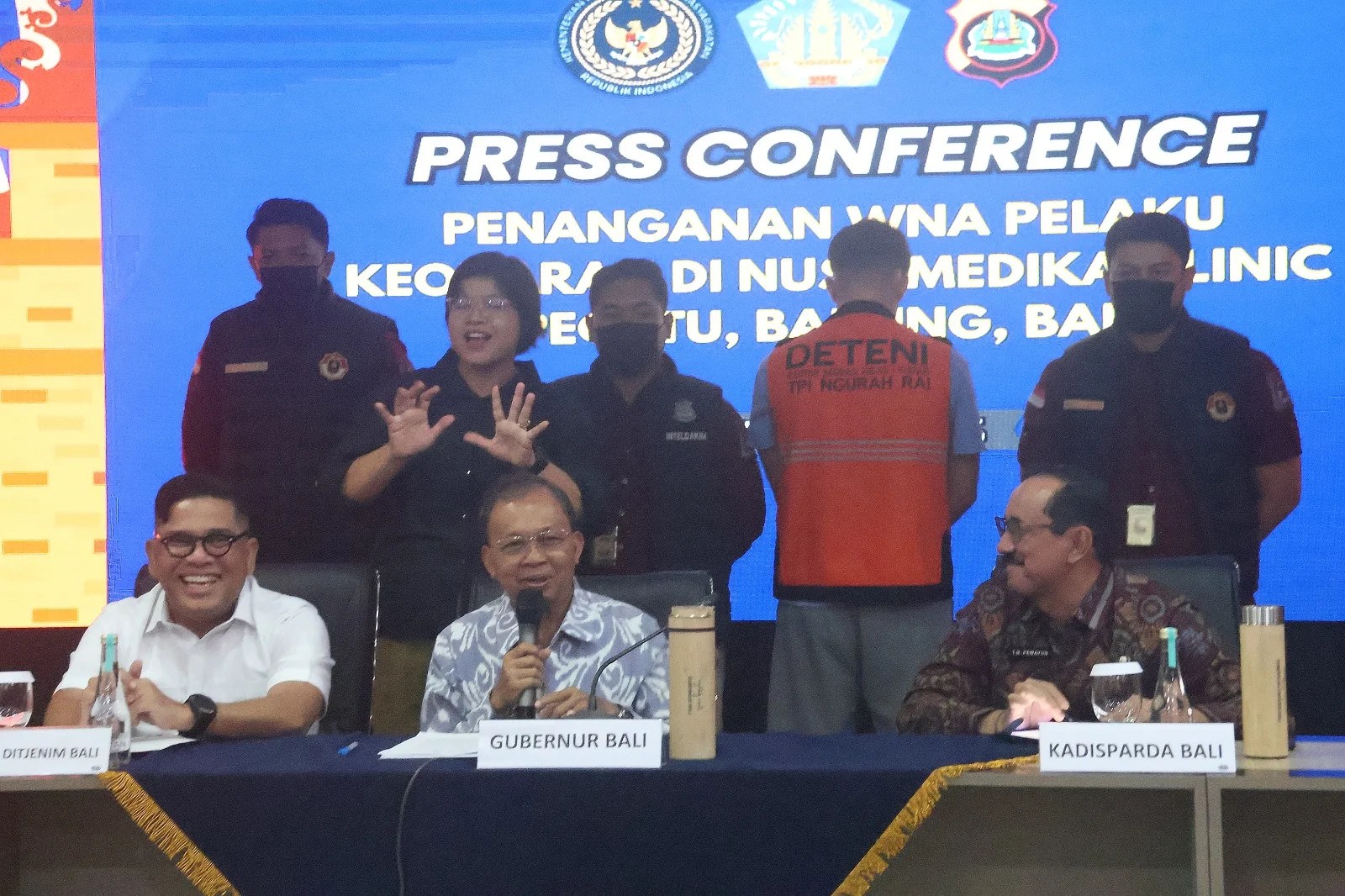 “Bali adalah rumah yang terbuka bagi wisatawan mancanegara. Namun, setiap orang yang datang ke Bali wajib menghormati hukum, adat, dan budaya lokal. Tidak ada ruang bagi tindakan yang mengganggu ketertiban umum. Spalagi membahayakan masyarakat,” tegas Gubernur Koster dalam konferensi pers penanganan WNA pelaku keonaran di Nusa Medika Clinic Pecatu, yang berlangsung di Aula Kantor Imigrasi Denpasar, pada Senin (14/4).